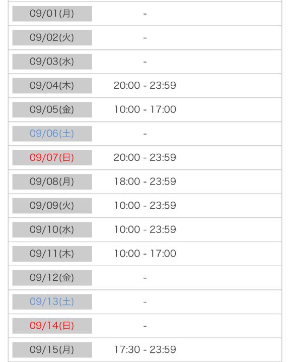 次回出勤は9月4日20時〜だよ🥺🤍