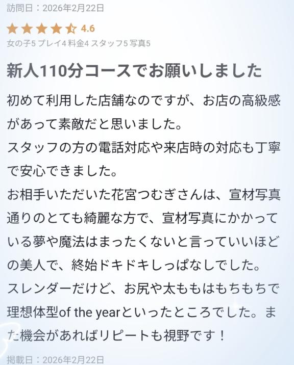 口コミありがとうございます🕊 ほぼ満点評価ありがとうございます✨ 美人だなんて照れちゃうけどお兄様をドキドキさせることが出来て嬉しく思います☺️💭 理想体型維持出来るように頑張ります✊また機会あれば遊びに来てくださいね🎀 […]