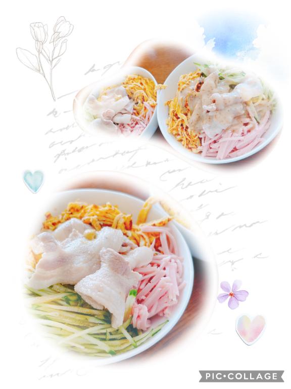 朝はよくばりラーメンサラダ&冷やし中華いただいたぜι(`・-・´)/✨ 余裕でぺろりん(*•؎ •)できると思ったら、、意外に多くてできにゃかた🤥🙉 よくばりだぁめ🙅🏻♀️⚡️