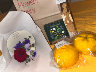 こんなに可愛い花束とお菓子、お茶までありがとうすぎます!💐💗
