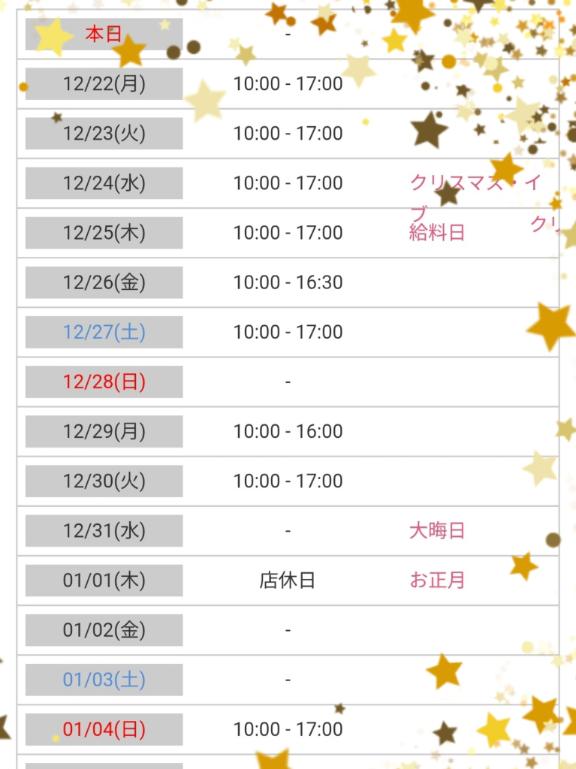 本日12/23 10:00〜17:00で終わりです!